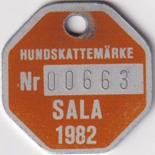 HUNDSKATTEMÄRKE Nr 0063 SALA 1982. Orange.