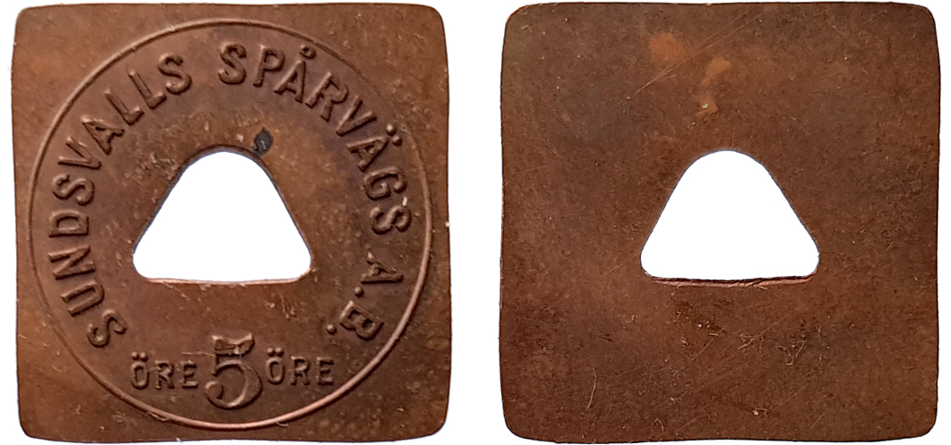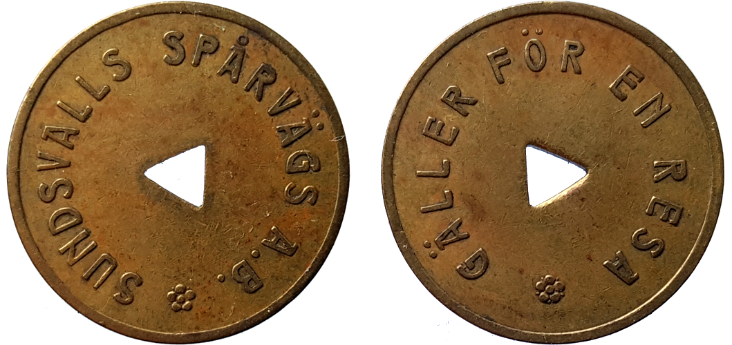 Sundsvalls Spårvägs AB 19 mm. Koppar. Smith Sweden 830DA.