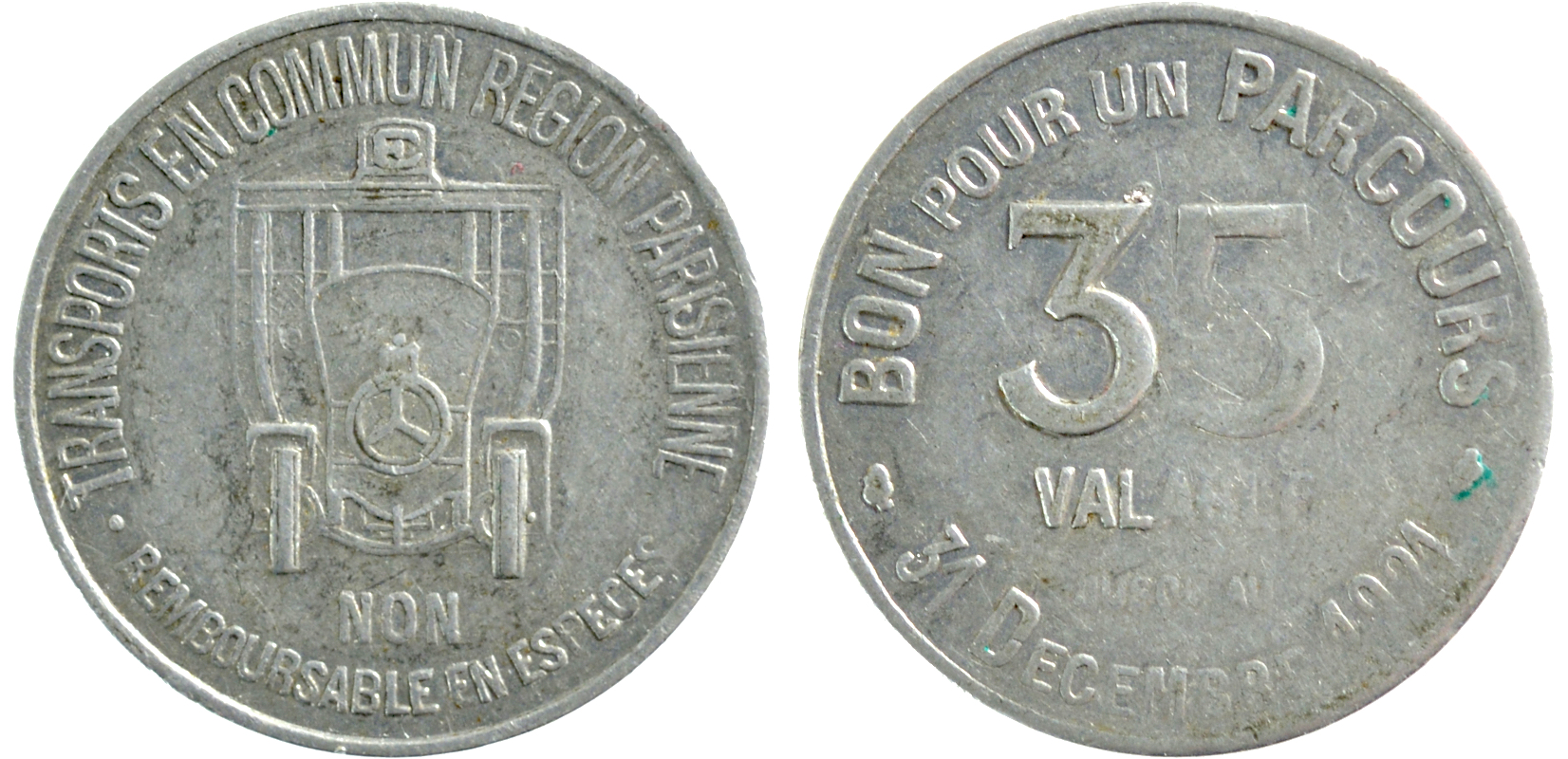 Transport en Commun Region Parisienne 35 1921 25 mm. Aluminium.