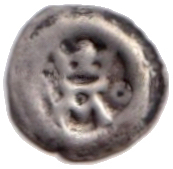Västerås. Penning. Brakteat med krönt A mellan två ringar. Malmer KrAYI. LL XXXIII:1c. 0,20g.