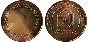 WESTMANLANDS LÄNS SPARBANK KUNGSÖR ) ( TVÄTTSTUGESPECIALISTEN VÄSTERÅS. Mässing. Ex. Hasturin Antiikki Oy.